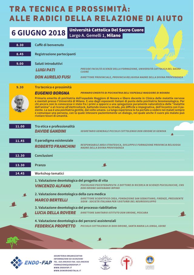 Il convegno è gratuito e offerto dall’Opera Don Orione, come stimolo a guadagnare una fraternità di pensieri e di pratiche per tutti i professionisti e volontari che quotidianamente operano nell’ambito del servizio alla vita fragile.